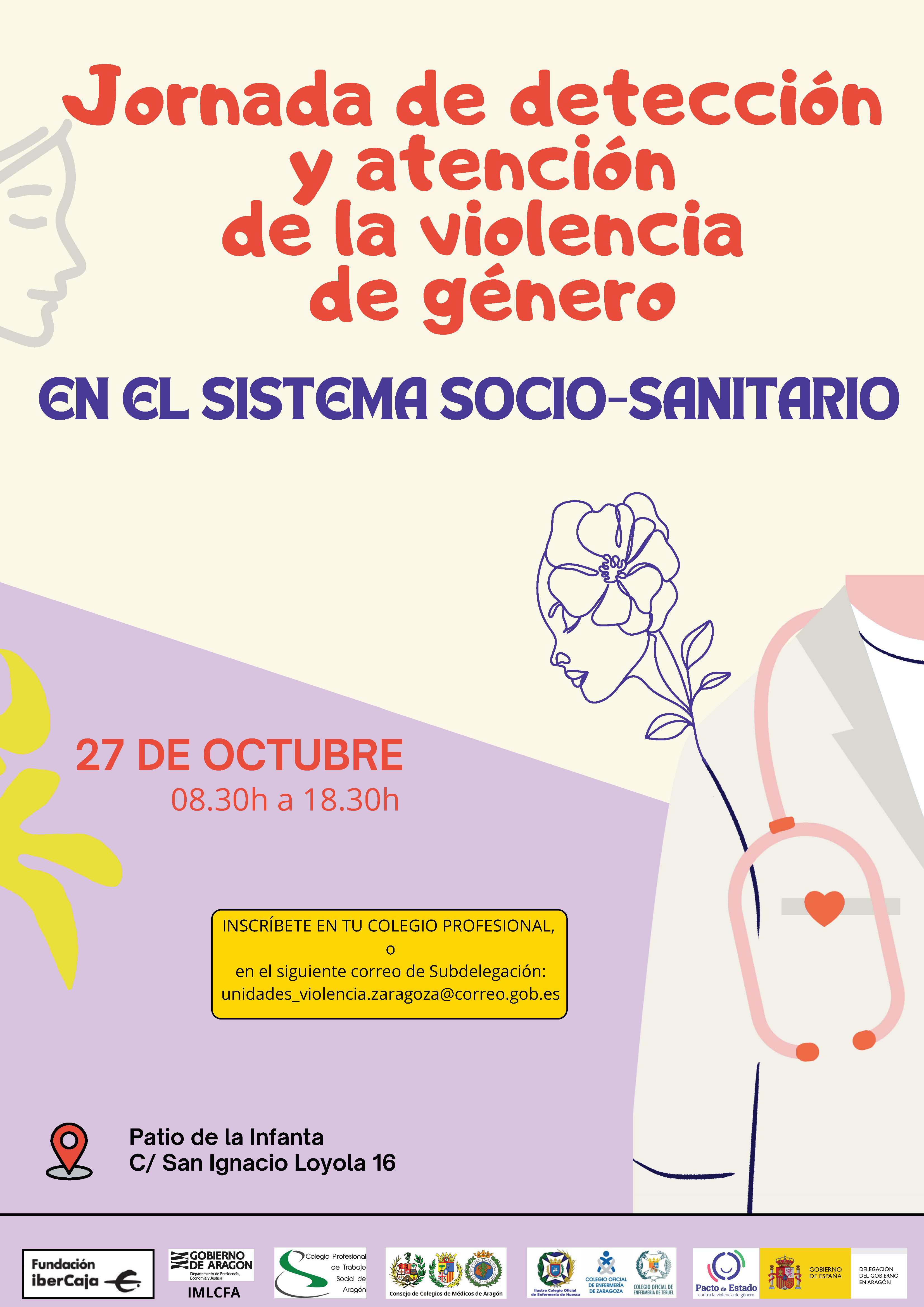 La Jornada de Detección y Atención de la Violencia de Género en el Ámbito Socio-Sanitario se celebrará en Zaragoza el lunes 27 de octubre, en el Patio de la Infanta de Zaragoza.